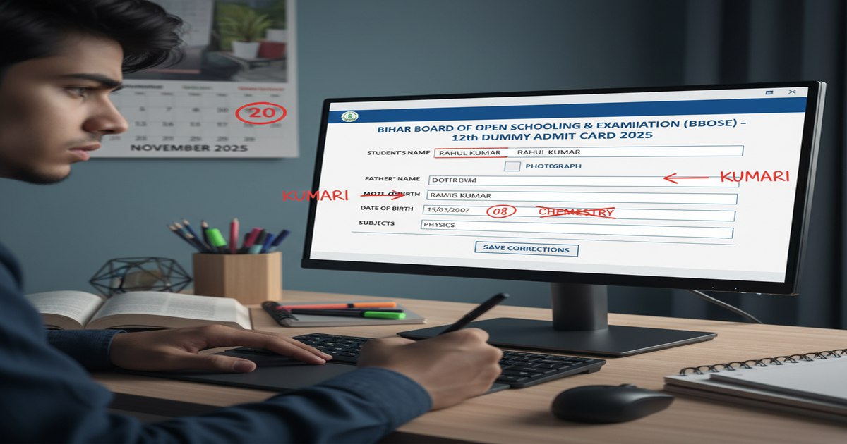 बिहार के उन हज़ारों छात्रों के लिए एक बड़ी और ज़रूरी खबर है जो बिहार मुक्त विद्यालयी शिक्षण एवं परीक्षा बोर्ड (BBOSE) के माध्यम से 12वीं की परीक्षा देने की तैयारी कर रहे हैं। बिहार विद्यालय परीक्षा समिति (BSEB) ने BBOSE के जून 2025 और दिसंबर 2025 सत्र के लिए जारी किए गए डमी एडमिट कार्ड में सुधार करने की अंतिम तिथि को आगे बढ़ा दिया है। यह फैसला छात्रों के हितों को ध्यान में रखते हुए लिया गया है ताकि कोई भी छात्र अपने विवरण में गलती होने के कारण भविष्य में किसी परेशानी का सामना न करे।
